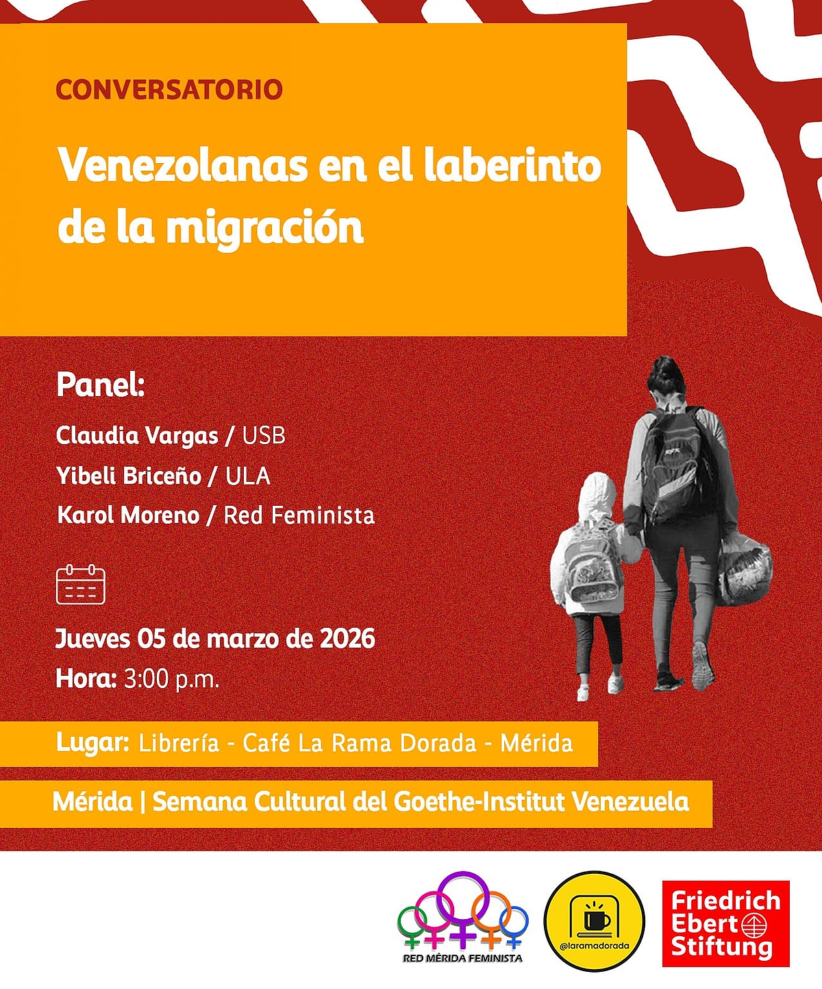 En el marco de la semana de Alemania organizada por el Goethe Institut en la ciudad de Mérida, le extendemos la más cordial invitación a acompañarnos en el conversatorio: Venezolanas en el laberinto de la Migración